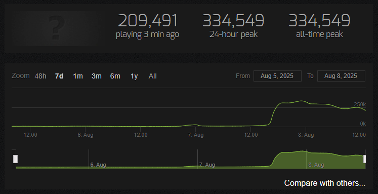 ちなみにSteamの基準でいう同接33万人がどれくらい凄い数字かというと、