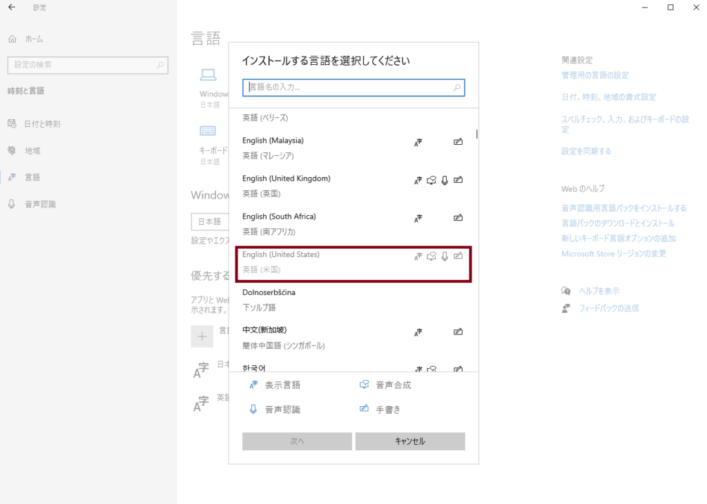 「English(United States)」をインストールします。