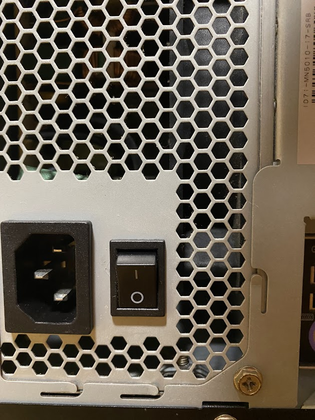 PCケース背面の電源ケーブルとモニターケーブルを差し込んで、電源を入れてください。