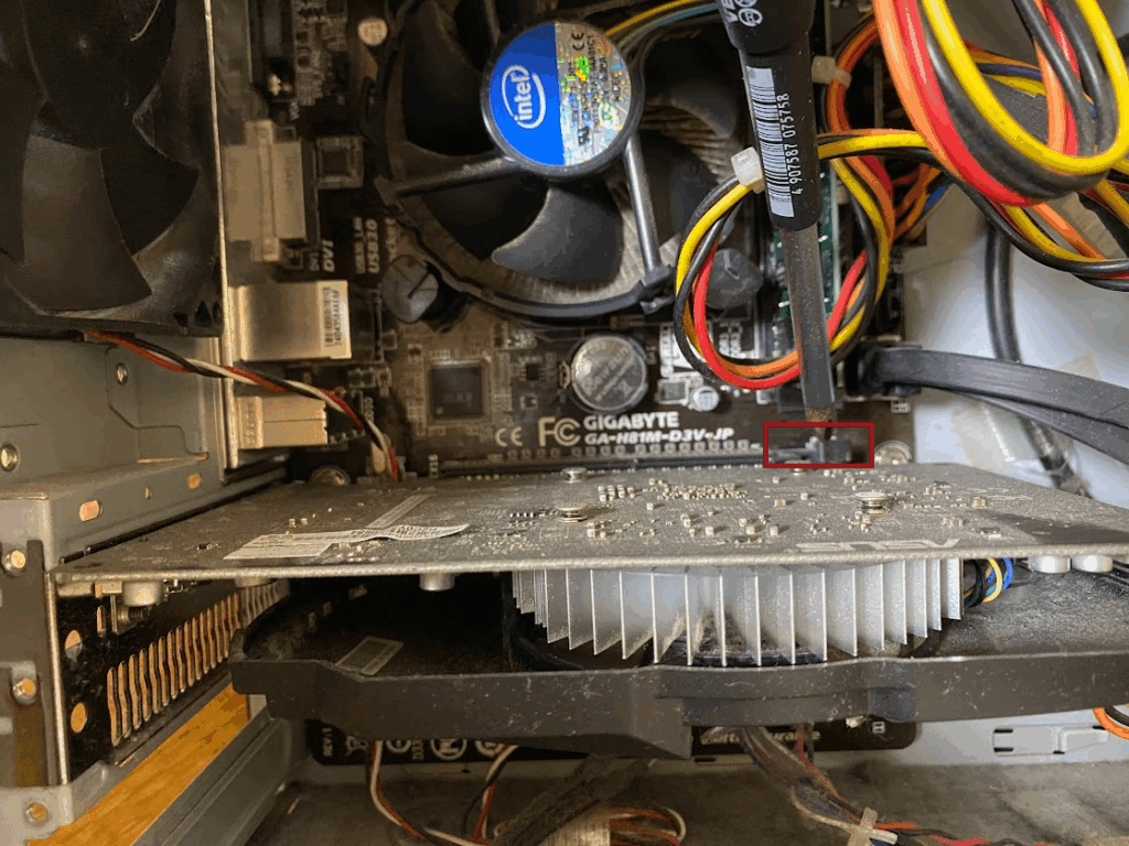 ちょうど分解予定だった僕の化石PCで見ていきましょう。積んでるグラボはGTX1050Ti。
